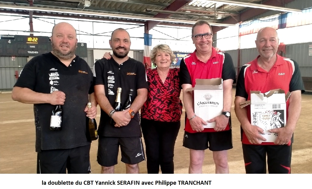 Le Challenge Cannizzo basée sur 32 Doubles 3&4 sur 4 parties (système Aurard) a accueilli sur le site de la Roseraie 30 équipes venant de toute la région avec même 5 équipes des Pyrénées Atlantiques des clubs de Pau et Jurançon. C’est la doublette du CBT Yannick SERAFIN avec Philippe TRANCHANT qui remporte la compétition devant l’équipe de Florian RAYNAUD et Fabrice BARRERA de L’ ASPTT Albi.