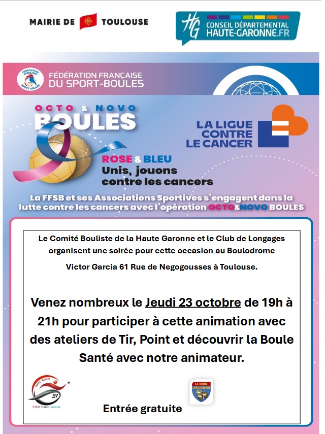 A la une Accueil Concours Le CBD31 organise Octo Novo le Jeudi 23 Octobre 2025 Publié 17 octobre 2025 Au boulodrome Victor GARCIA à 19h