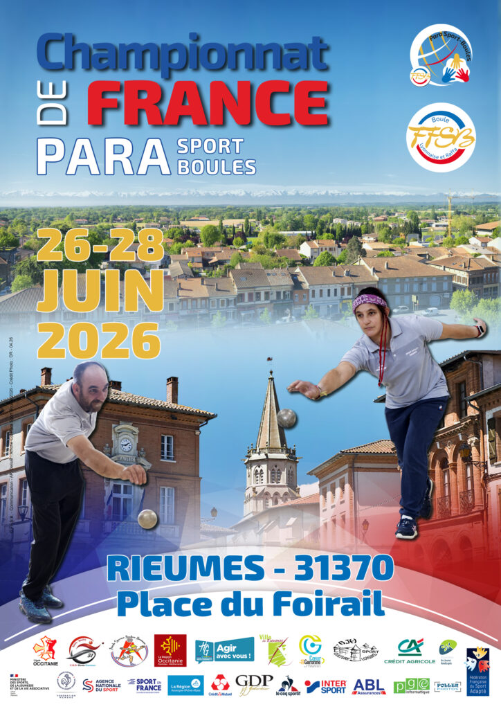 A la une Accueil Championnats de France Rieumes Ch de France Para Sport Boules- 26 au 28 juin2026 Publié 20 mars 2026 2026_06_dossier de presse CDF para sport-boulesTélécharger